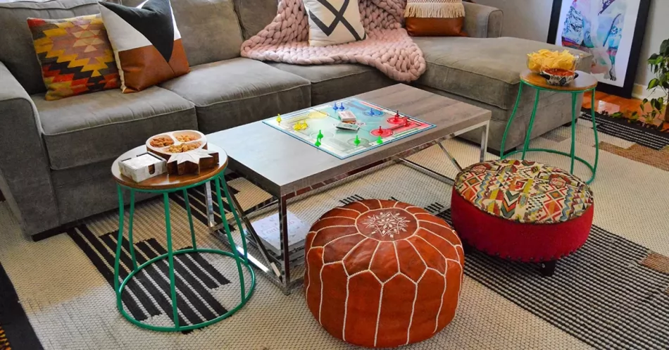 De exemplu un taburet in stil orientale cu foarte multe imprimeuri colorate nu se va armonica niciodata cu o canapea in stil scandinav simpla, complet lipsita de ornamente.