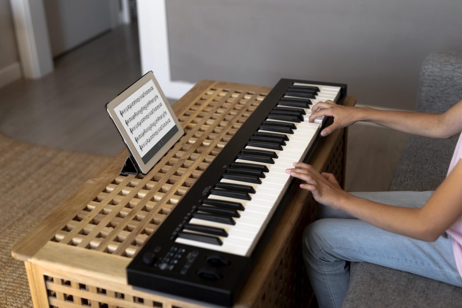 Un pian acustic este un obiect analogic izolat. Un pian digital este un hub multimedia. Majoritatea modelelor moderne au conexiune USB sau Bluetooth. Asta înseamnă că poți conecta pianul la o tabletă sau un telefon și poți folosi aplicații educaționale interactive (precum Simply Piano sau Flowkey). Aceste aplicații „ascultă” ce cânți și îți dau feedback în timp real, transformând studiul anost într-un joc video captivant. Pentru copiii „nativi digitali”, această funcție este diferența dintre a abandona studiul după o lună și a dezvolta o pasiune pe viață.